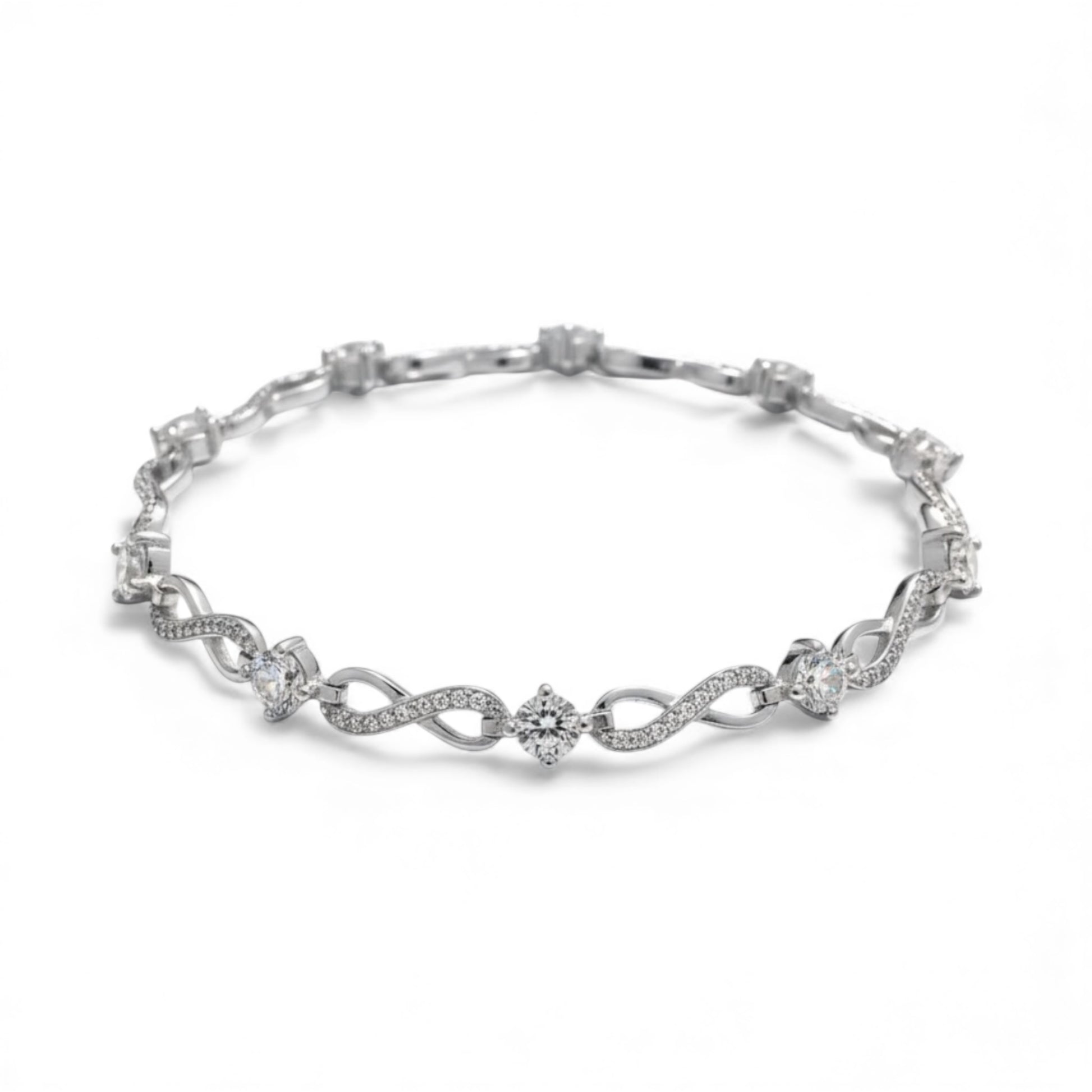 Sterling Silver Ladies Infinity And CZ Fancy Bracelet