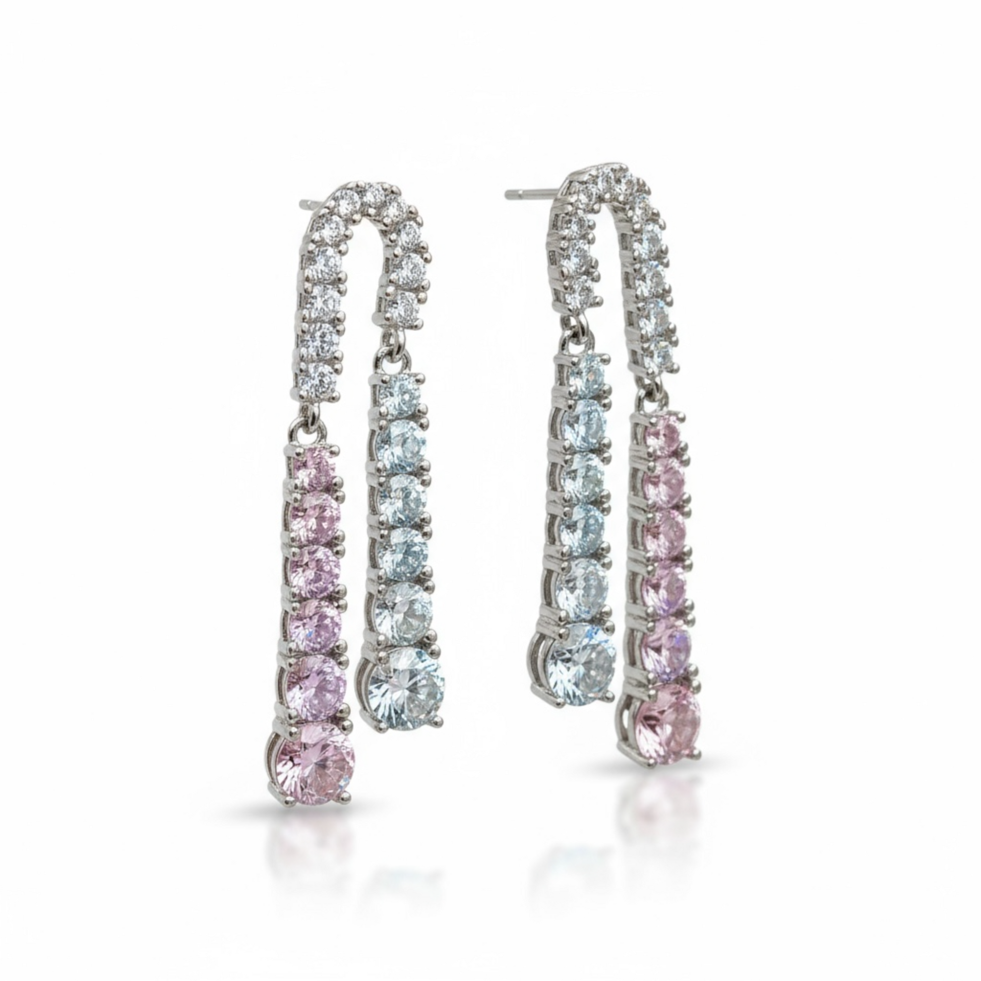 These Sterling Silver Multicolor CZ Drop Earrings showcase expertly crafted cubic zirconia stones in vibrant hues, delicately set to catch light from every angle. The sterling silver finish offers durability and a timeless sheen, while the drop design adds elegant movement. Perfect for enhancing both everyday looks and special occasions with a refined burst of color and sophistication.