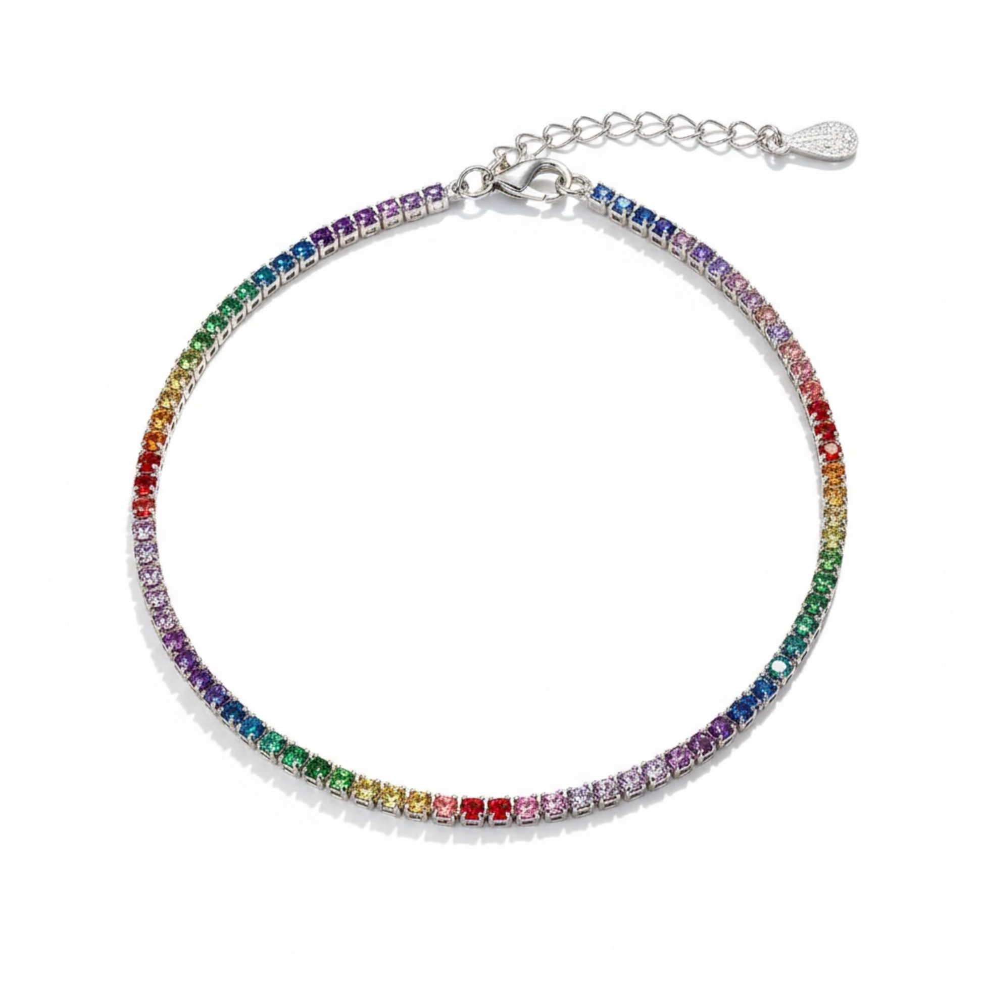 Sterling Silver Rainbow CZ Tennis Bracelet