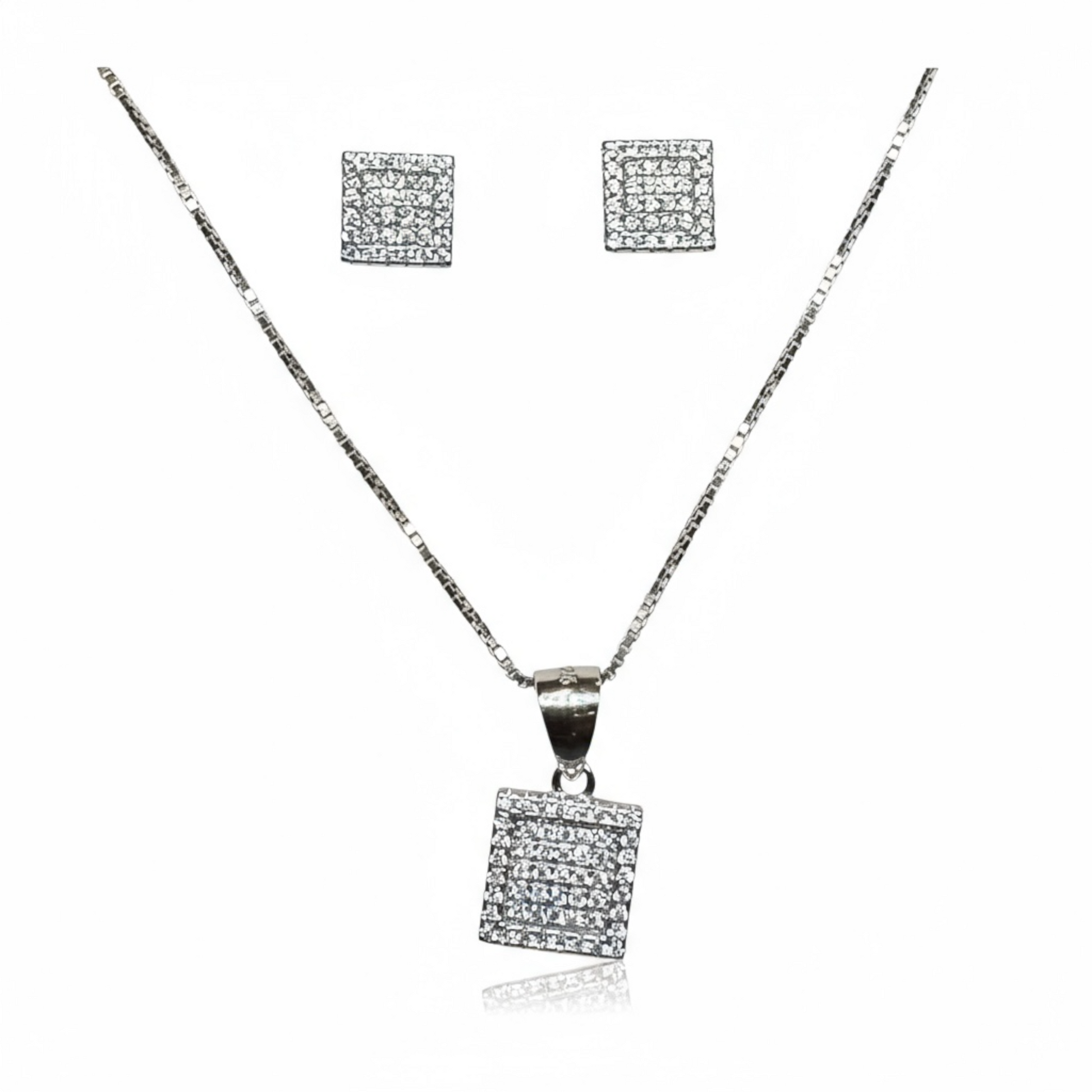 Elevate your style with this Sterling Silver Square pavé CZ set, meticulously crafted for a refined and polished look. The gleaming sterling silver frame perfectly complements the intricate pavé arrangement of cubic zirconia stones, offering a brilliant sparkle that enhances any ensemble. Ideal for both everyday elegance and special occasions, this piece seamlessly blends sophisticated design with expert craftsmanship, making it a timeless addition to your jewellery collection.